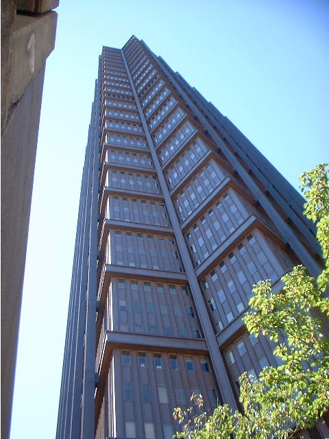 There's a bar in the bottom of this skyscraper. |